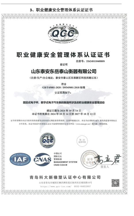 山東泰安東岳泰山衡器有限公司